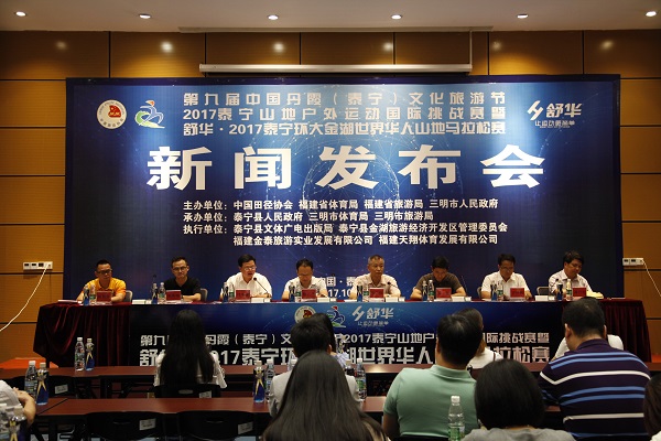 舒華2017泰寧環(huán)大金湖世界華人山地馬拉松賽將于10月15日在中國靜心之地??泰寧舉行。9月12日上午,賽事組委會在福州海峽奧體中心召開了新聞發(fā)布會。