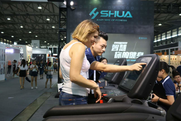 外國觀眾親身體驗(yàn)舒華智能健身設(shè)備