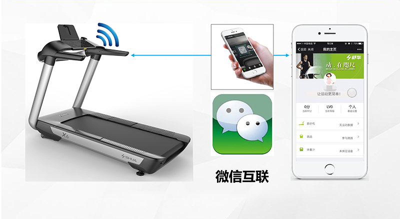微信互聯(lián),通過微信就可以使手機和跑步機進行連接互動,不用單獨下載APP便可以進行數(shù)據(jù)采集和運動管理,一鍵曬步數(shù),操作簡單方便,更暢快享受智能化運動的快樂,讓運動更盡興!