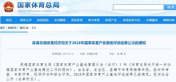 據(jù)悉,本次評(píng)選是由各省、自治區(qū)、直轄市體育局推薦申報(bào),經(jīng)材料審查、專家評(píng)審、現(xiàn)場(chǎng)評(píng)估和綜合評(píng)定。其中包括11個(gè)國(guó)家體育產(chǎn)業(yè)示范基地、22個(gè)國(guó)家體育產(chǎn)業(yè)示范單位、12個(gè)國(guó)家體育產(chǎn)業(yè)示范項(xiàng)目。